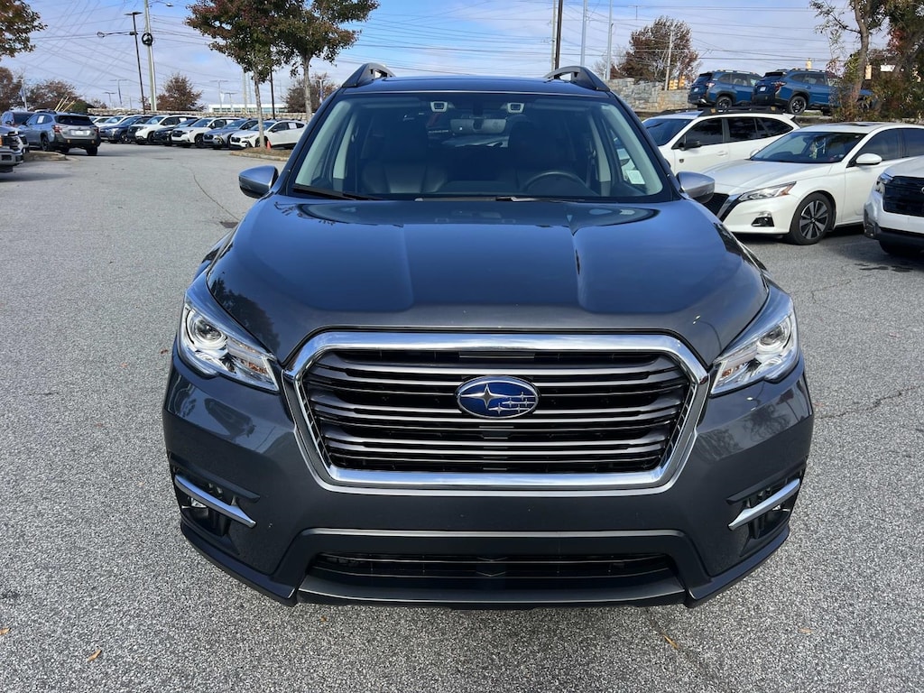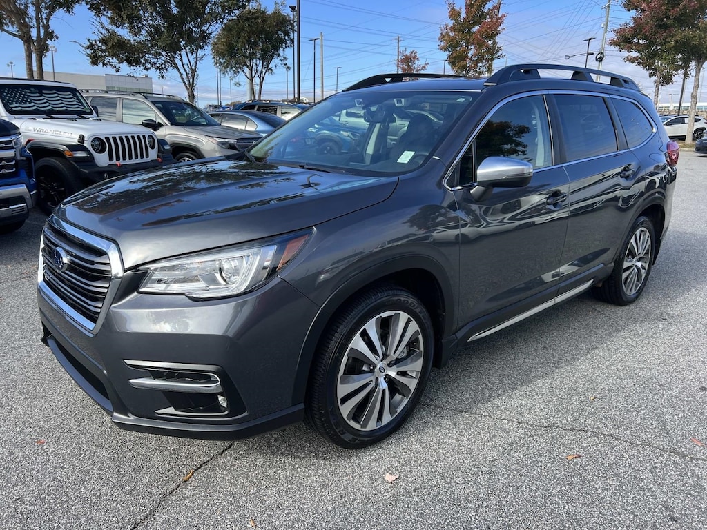 Gray Metallic 2020 Subaru Ascent Limited AWD Lineartronic CVT 2.4L DOHC New Feature, **Back up Camera, **Bluetooth, **Keyless Entry, Ascent Limited, 4D Sport Utility, 2.4L DOHC, Lineartronic CVT, AWD, Gray Metallic, Slate Black Leather, 3rd row seats: bench, 4-Wheel Disc Brakes, 6 Speakers, ABS brakes, Air Conditioning, All-Weather Floor Liners, Alloy wheels, AM/FM radio: SiriusXM, Auto High-beam Headlights, Auto-Dimming Exterior Mirror w/Approach Light, Auto-dimming Rear-View mirror, Automatic temperature control, Axle Ratio: 4.44, Brake assist, Bumpers: body-color, Cargo Tray, CD player, Compass, Delay-off headlights, Driver door bin, Driver vanity mirror, Dual front impact airbags, Dual front side impact airbags, Electronic Stability Control, Emergency communication system: STARLINK Safety and Security (Subscription Required), Exterior Parking Camera Rear, Four wheel independent suspension, Front anti-roll bar, Front Bucket Seats, Front Center Armrest, Front dual zone A/C, Front fog lights, Front reading lights, Fully automatic headlights, Garage door transmitter: HomeLink, Heated door mirrors, Heated Front Bucket Seats, Heated front seats, Heated rear seats, Heated steering wheel, Illuminated entry, Knee airbag, Low tire pressure warning, Memory seat, Occupant sensing airbag, Outside temperature display, Overhead airbag, Overhead console, Panic alarm, Passenger door bin, Passenger vanity mirror, Perforated Leather-Trimmed Upholstery, Popular Package #2, Power door mirrors, Power driver seat, Power Liftgate, Power passenger seat, Power steering, Power windows, Radio data system, Radio: Subaru STARLINK 8.0" Multimedia Plus System, Rear air conditioning, Rear anti-roll bar, Rear Bumper Cover, Rear reading lights, Rear window defroster, Rear window wiper, Reclining 3rd row seat, Remote keyless entry, Security system, Speed control, Splash Guards, Split folding rear seat, Spoiler, STARLINK/Apple CarPlay/Android Auto, Steering wheel mounted audio controls, Tachometer, Telescoping steering wheel, Tilt steering wheel, Traction control, Trip computer, Turn signal indicator mirrors, Variably intermittent wipers, Wheels: 20" Dk Gray Aluminum Alloy w/Machine Finish.