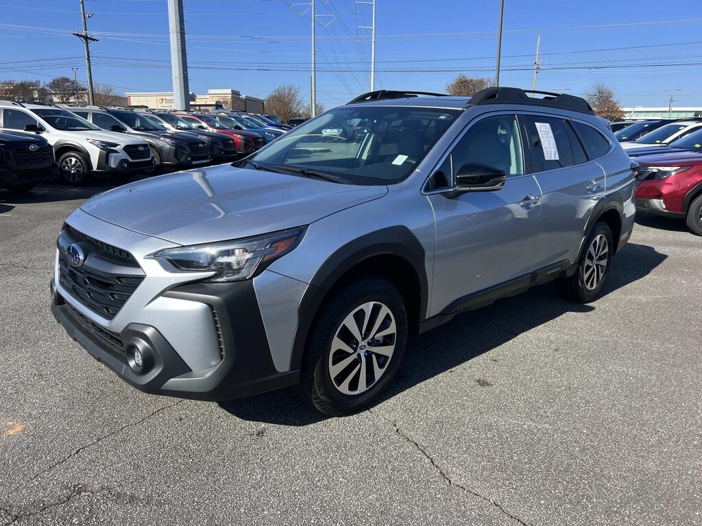 Certified. Silver 2025 Subaru Outback Premium AWD CVT Lineartronic 2.5L 4-Cylinder DOHC 16V New Feature, **Bluetooth, **Keyless Entry, **Blind Spot Monitor, Outback Premium, 4D Sport Utility, 2.5L 4-Cylinder DOHC 16V, CVT Lineartronic, AWD, Silver, 4-Wheel Disc Brakes, 6 Speakers, ABS brakes, Air Conditioning, All-Weather Floor Liners, Alloy wheels, AM/FM radio: SiriusXM with 360L, Apple CarPlay & Android Auto, Auto High-beam Headlights, Auto-Dimming Exterior Mirror w/Approach Light, Auto-Dimming Mirror w/Compass & HomeLink, Automatic temperature control, Blind Spot Detection (BSD), Brake assist, BSD & RCTA & Keyless Access & Push Button Start, Bumpers: body-color, Cloth Upholstery, Driver door bin, Driver vanity mirror, Dual front impact airbags, Dual front side impact airbags, Electronic Stability Control, Emergency communication system: MySubaru Safety (3-year free trial), Exterior Parking Camera Rear, Four wheel independent suspension, Front anti-roll bar, Front Bucket Seats, Front Center Armrest w/Storage, Front dual zone A/C, Front fog lights, Front reading lights, Fully automatic headlights, Hands-Free Power Rear Gate, Heated door mirrors, Heated Front Bucket Seats, Heated front seats, Illuminated entry, Keyless Access w/Push Button Start, Knee airbag, Leather Shift Knob, Leather steering wheel, LED Upgrade, Low tire pressure warning, Occupant sensing airbag, Outside temperature display, Overhead airbag, Overhead console, Panic alarm, Passenger door bin, Passenger vanity mirror, Popular Package #1, Power door mirrors, Power driver seat, Power Moonroof, Power steering, Power windows, Radio: Subaru 11.6" Multimedia Plus System, Radio: Subaru 11.6" Multimedia System w/Navigation, Rear anti-roll bar, Rear Bumper Cover, Rear Cross Traffic Alert (RCTA), Rear seat center armrest, Rear window defroster, Rear window wiper, Remote keyless entry, Roof rack, Security system, Speed control, Speed-sensing steering, Split folding rear seat, Spoiler, Steering wheel mounted audio controls, Tachometer, Telescoping steering wheel, Tilt steering wheel, Traction control, Trip computer, Turn signal indicator mirrors, Variably intermittent wipers, Wheels: 17" x 7J Black Aluminum-Alloy.