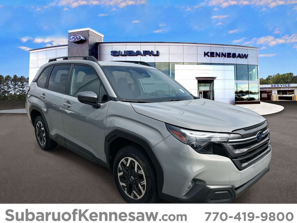 Certified. Silver 2026 Subaru Forester Premium AWD Lineartronic CVT 2.5L 4-Cylinder DOHC 16V New Feature, **Back up Camera, **Bluetooth, **Keyless Entry, **Blind Spot Monitor, **Apple CarPlay, Forester Premium, 4D Sport Utility, 2.5L 4-Cylinder DOHC 16V, Lineartronic CVT, AWD, Silver, Black w/Premium Textured Cloth Upholstery, 4-Wheel Disc Brakes, 6 Speakers, ABS brakes, Air Conditioning, Alloy wheels, AM/FM radio: SiriusXM with 360L, Anti-whiplash front head restraints, Auto High-beam Headlights, Automatic Emergency Steering, Automatic temperature control, Blind-Spot Detection (BSD)/RCTA System, Brake assist, Bumpers: body-color, Driver door bin, Driver vanity mirror, Dual front impact airbags, Dual front side impact airbags, Electronic Stability Control, Emergency communication system: MySubaru Companion (5-years free), Emergency Lane Keep Assist, Exterior Parking Camera Rear, Four wheel independent suspension, Front anti-roll bar, Front Bucket Seats, Front Center Armrest, Front dual zone A/C, Front fog lights, Front reading lights, Fully automatic headlights, Heated door mirrors, Heated Front Bucket Seats, Heated front seats, Illuminated entry, Knee airbag, Leather steering wheel, Low tire pressure warning, Occupant sensing airbag, Outside temperature display, Overhead airbag, Overhead console, Panic alarm, Passenger door bin, Passenger vanity mirror, Power door mirrors, Power driver seat, Power moonroof: Panoramic, Power Rear Gate, Power Rear Gate and Blind Spot Detection with Rear Cross Traffic Alert, Power steering, Power windows, Premium Textured Cloth Upholstery, Radio data system, Radio: Subaru 11.6" Multimedia Plus System, Rear anti-roll bar, Rear seat center armrest, Rear window defroster, Rear window wiper, Remote keyless entry, Security system, Speed control, Speed-sensing steering, Split folding rear seat, Spoiler, Steering wheel mounted audio controls, Tachometer, Telescoping steering wheel, Tilt steering wheel, Traction control, Trip computer, Variably intermittent wipers, Wheels: 17" x 7.0 J Dark Metallic Aluminum-Alloy.