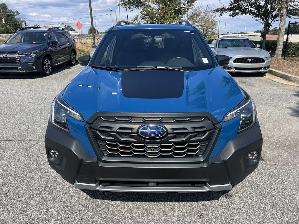 Certified. Blue 2022 Subaru Forester Wilderness AWD Lineartronic CVT 2.5L 4-Cylinder DOHC 16V New Feature, **Back up Camera, **Bluetooth, **Keyless Entry, **Navigation, **Blind Spot Monitor, **Apple CarPlay, Forester Wilderness, 4D Sport Utility, 2.5L 4-Cylinder DOHC 16V, Lineartronic CVT, AWD, Blue, 4-Wheel Disc Brakes, 4.11 Axle Ratio, 6 Speakers, ABS brakes, Air Conditioning, Alloy wheels, AM/FM radio: SiriusXM, Anti-whiplash front head restraints, Auto High-beam Headlights, Automatic temperature control, Brake assist, Bumpers: body-color, CD player, Driver door bin, Driver vanity mirror, Dual front impact airbags, Dual front side impact airbags, Electronic Stability Control, Emergency communication system: STARLINK Safety and Security (Subscription Required), Exterior Parking Camera Rear, Four wheel independent suspension, Front anti-roll bar, Front Bucket Seats, Front Center Armrest, Front dual zone A/C, Front fog lights, Front reading lights, Fully automatic headlights, Heated door mirrors, Heated Front Bucket Seats, Heated front seats, Illuminated entry, Knee airbag, Leather Shift Knob, Low tire pressure warning, Occupant sensing airbag, Outside temperature display, Overhead airbag, Overhead console, Panic alarm, Passenger door bin, Passenger vanity mirror, Power door mirrors, Power driver seat, Power moonroof: Panoramic, Power steering, Power windows, Radio data system, Radio: Subaru Starlink 8.0" Multimedia Plus System, Rear anti-roll bar, Rear seat center armrest, Rear window defroster, Rear window wiper, Remote keyless entry, Roof rack: rails only, Security system, Speed control, Speed-sensing steering, Split folding rear seat, Spoiler, STARLINK/Apple CarPlay/Android Auto, Steering wheel mounted audio controls, Tachometer, Telescoping steering wheel, Textured StarTex Upholstery, Tilt steering wheel, Traction control, Trip computer, Turn signal indicator mirrors, Variably intermittent wipers, Wheels: 17" x 7.0J Matte Black Machine Finish Alloy.